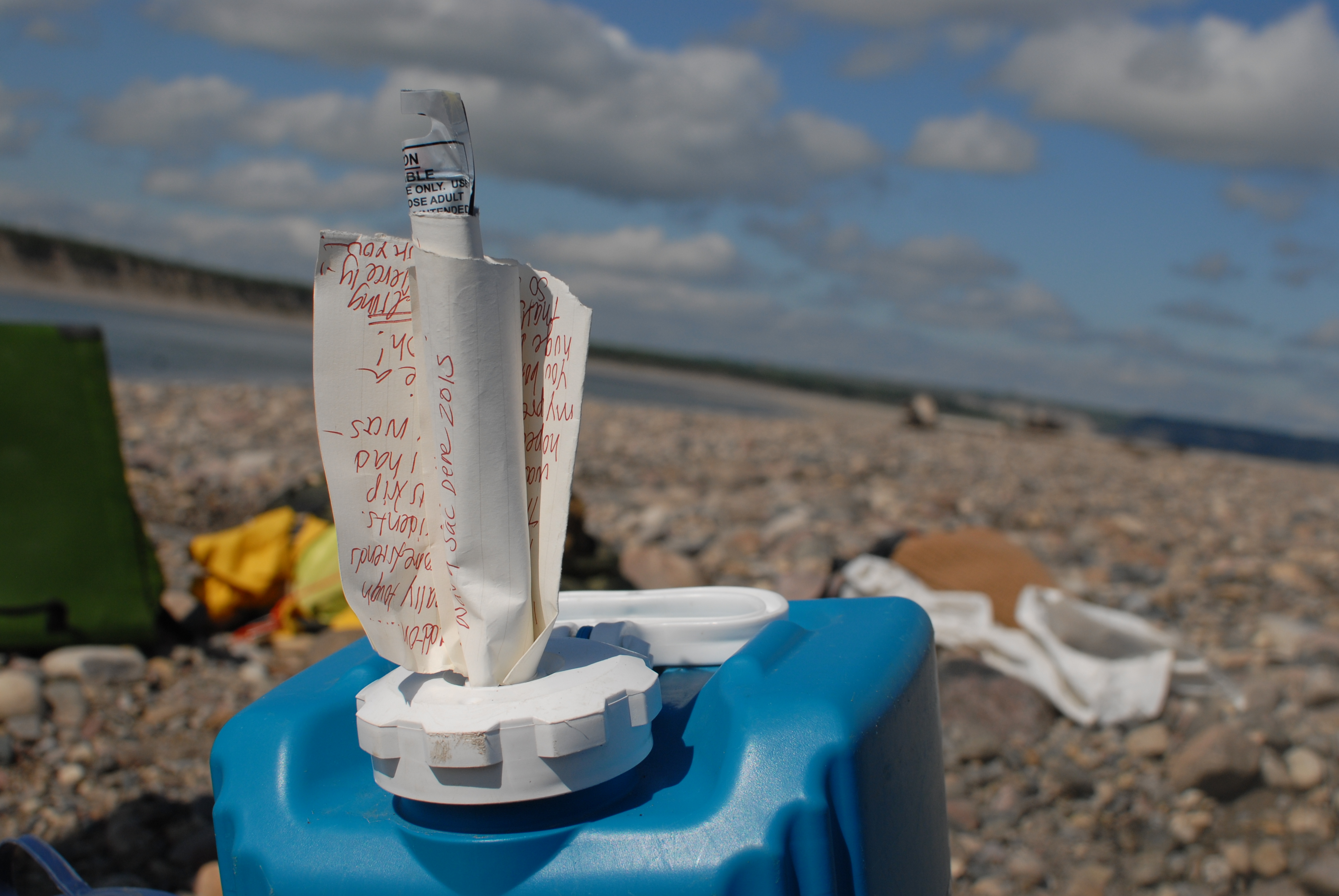 the camps on the map are days 20 and 21. and the note in the water jug is one nav left for us – along with sparklers! sweet.