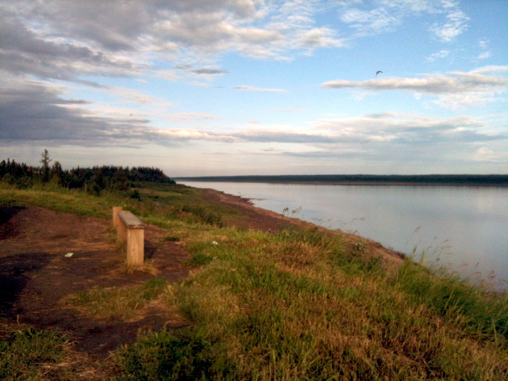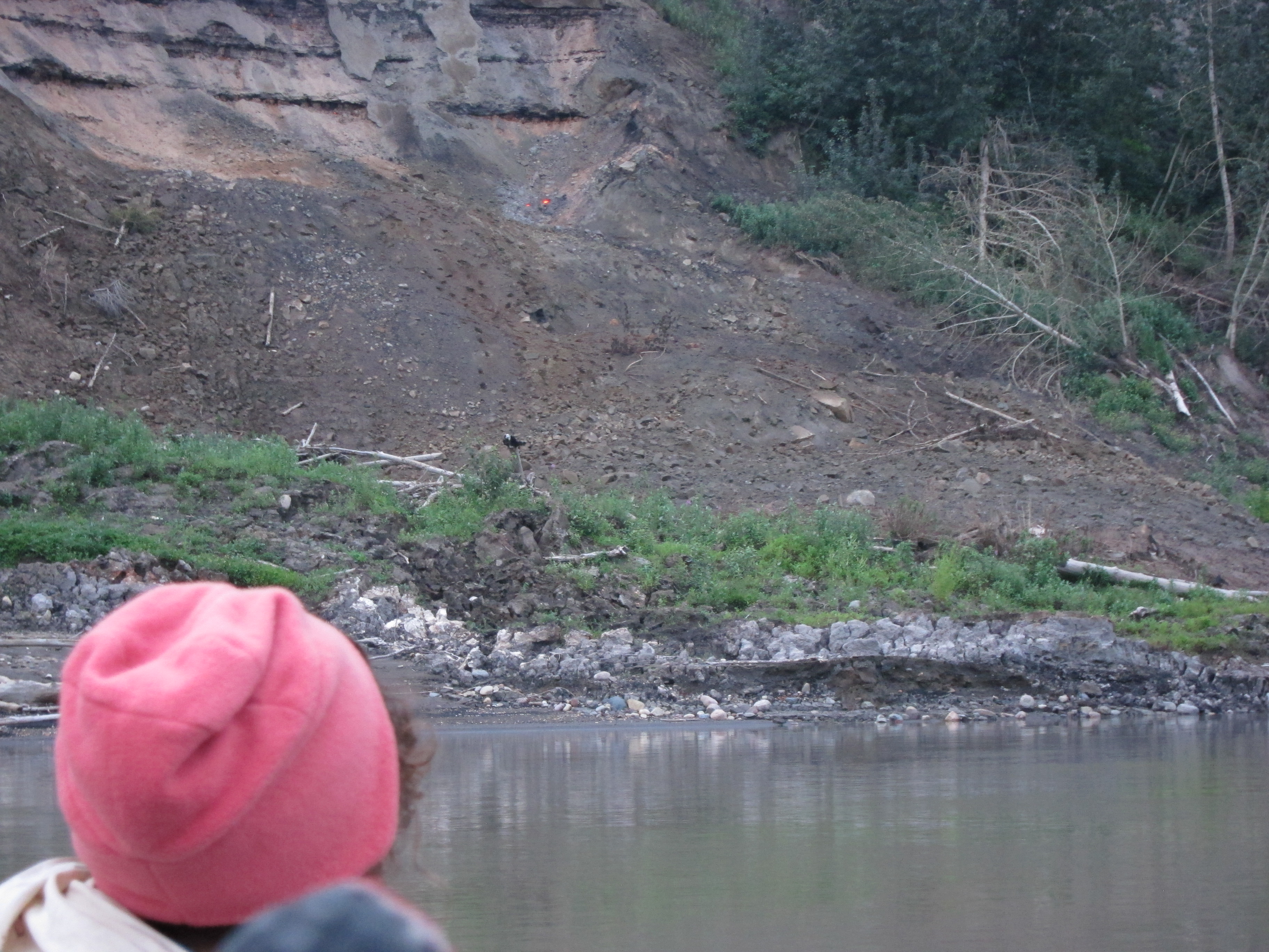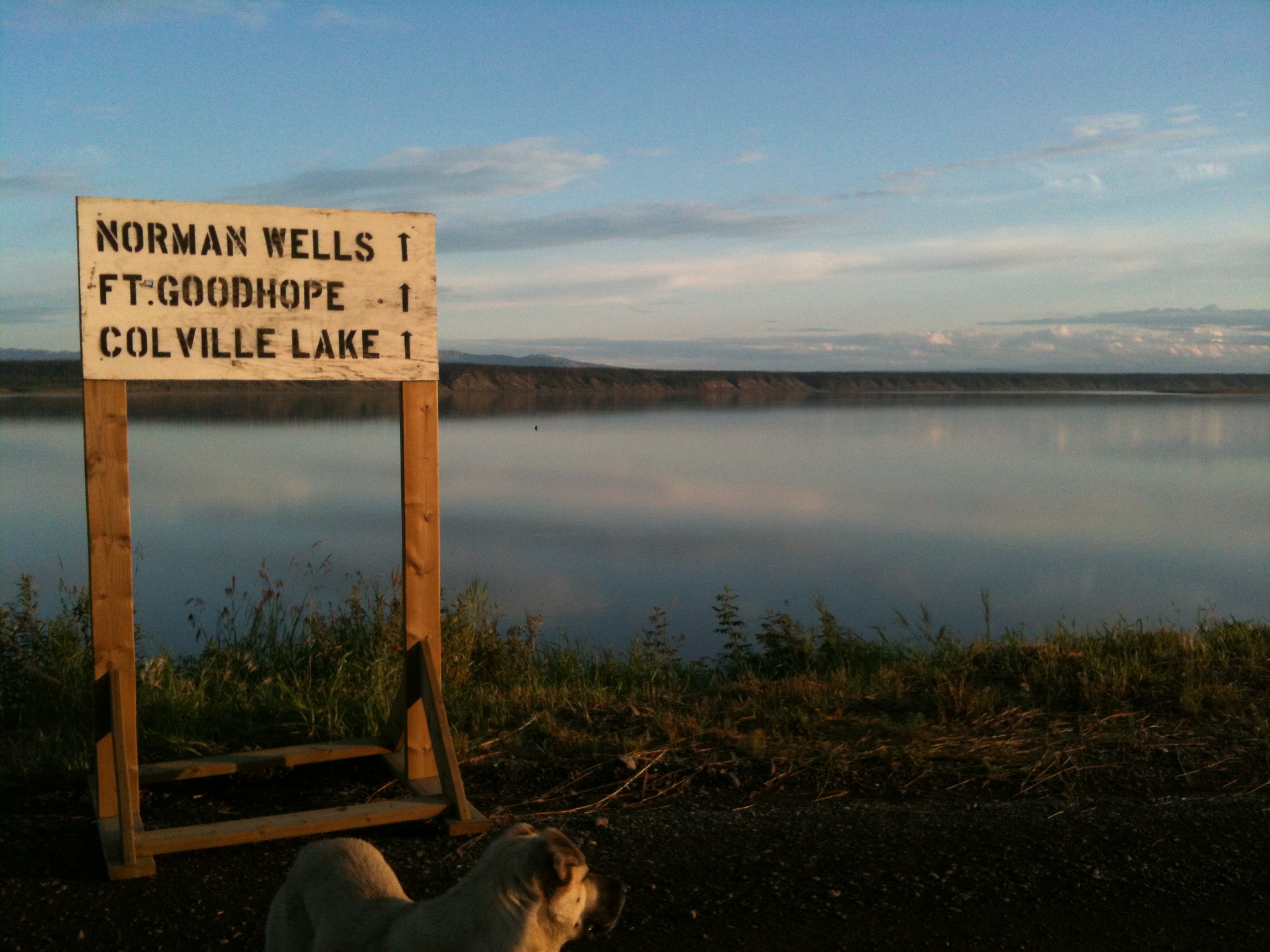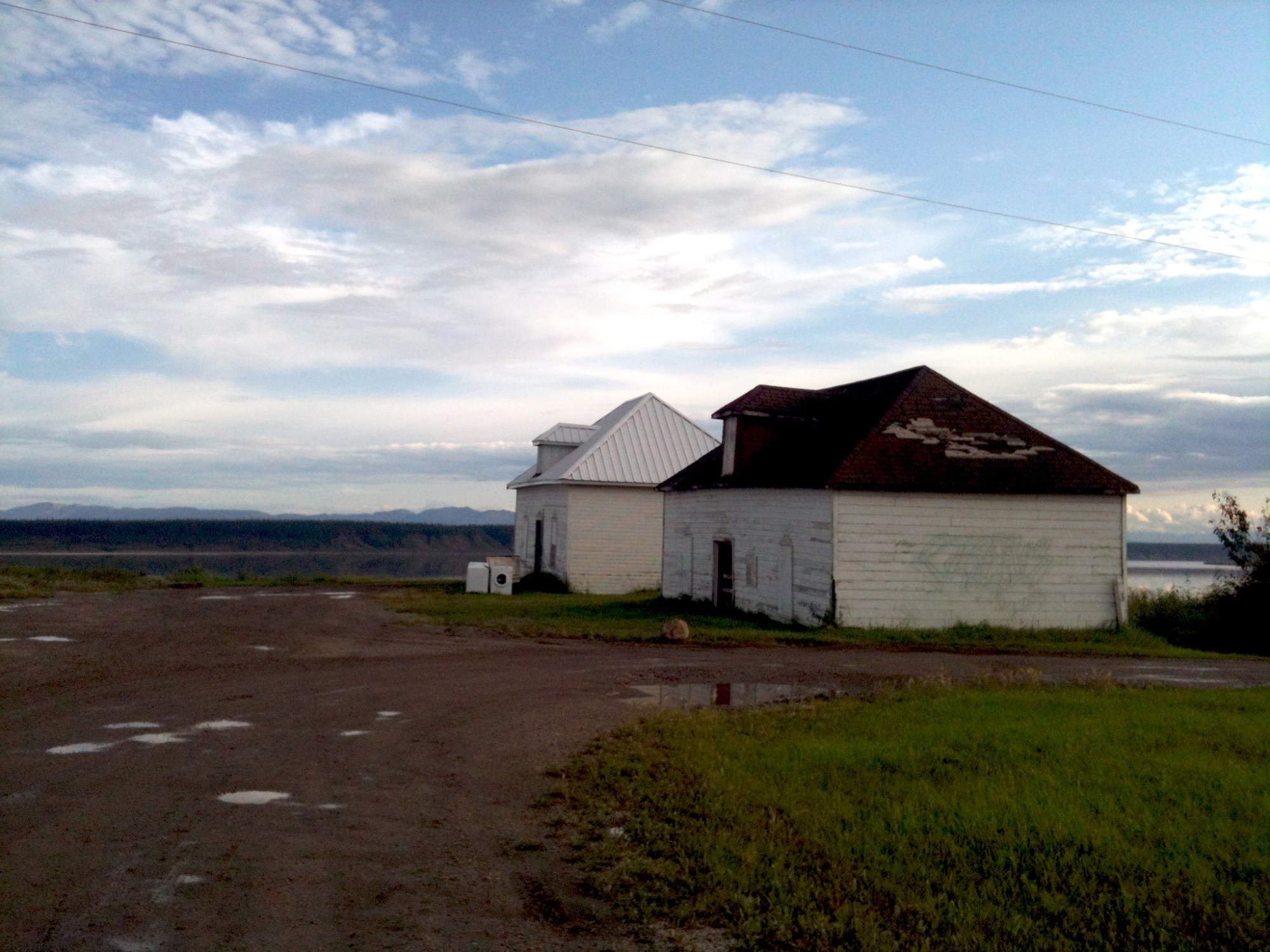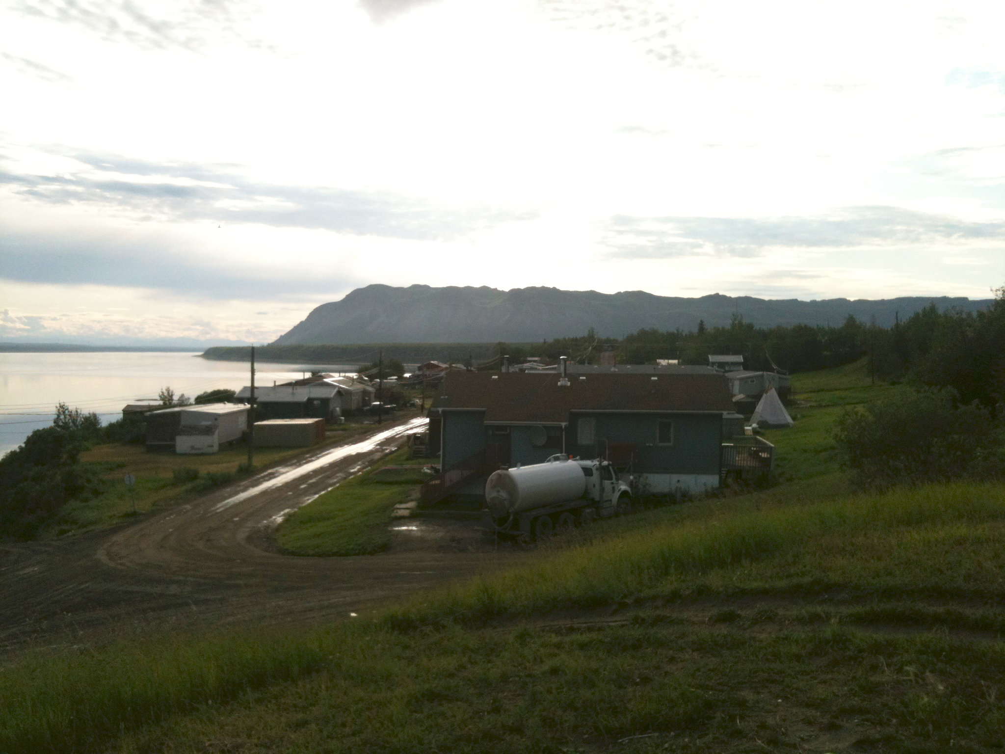 after witnessing the amazing smoking coal seams (glowing embers embedded in the cliffs too!) we pulled up to tulita in the dusky 3am light, feeling cheered by the twinkling lights of town. and then after not nearly enough sleep we embarked on a very social day. first to the post office where we met up with sac dene on the way. yay! we received so many letters (thank you friends!), but i didn’t get my MEC orders, so i was a little concerned. the rest of the day we spent visiting the band office, where the chief kindly let us use his computer to check our email; getting groceries; looking for a place to shower; finding out about hand games that were to happen that evening and subsequently hearing this news repeated several times by different sources, all with rescheduled times and locations; hanging out in the arbor with both our sac dene friends and local folks; meeting ron and wendy, who invited us for showers at their house; meeting mj kunkel, an incredible local artist who was so dear and talented and who then invited us to stay for delicious hamburger soup while she told us stories of her life; and then on to the hand games which ended up happening at the rec center. the hand games were incredible: intense and loud and beautyfull and fast-paced, at least to me who took awhile to figure out what everyone was doing. during this i took a break to walk around in the quiet of town and buy some poutine from the store down the road. i thought i might go to bed soon b/c i was so exhausted, but getting back to the rec center i learned there was to be dancing later, so i stayed. the dancing was also beautyfull and fun, but in a calmer way – it was very respectful. i felt so thankfull to be there at that time and to be welcomed in and be able to partake in the community. i think this was partly a benefit of traveling with sac dene on and off, when we were with them in communities it seemed like the communities pulled out all the stops for them – so not only were they super fun to be around, we were able to experience more of the community life than we would have been able to on our own. thank you sac dene!