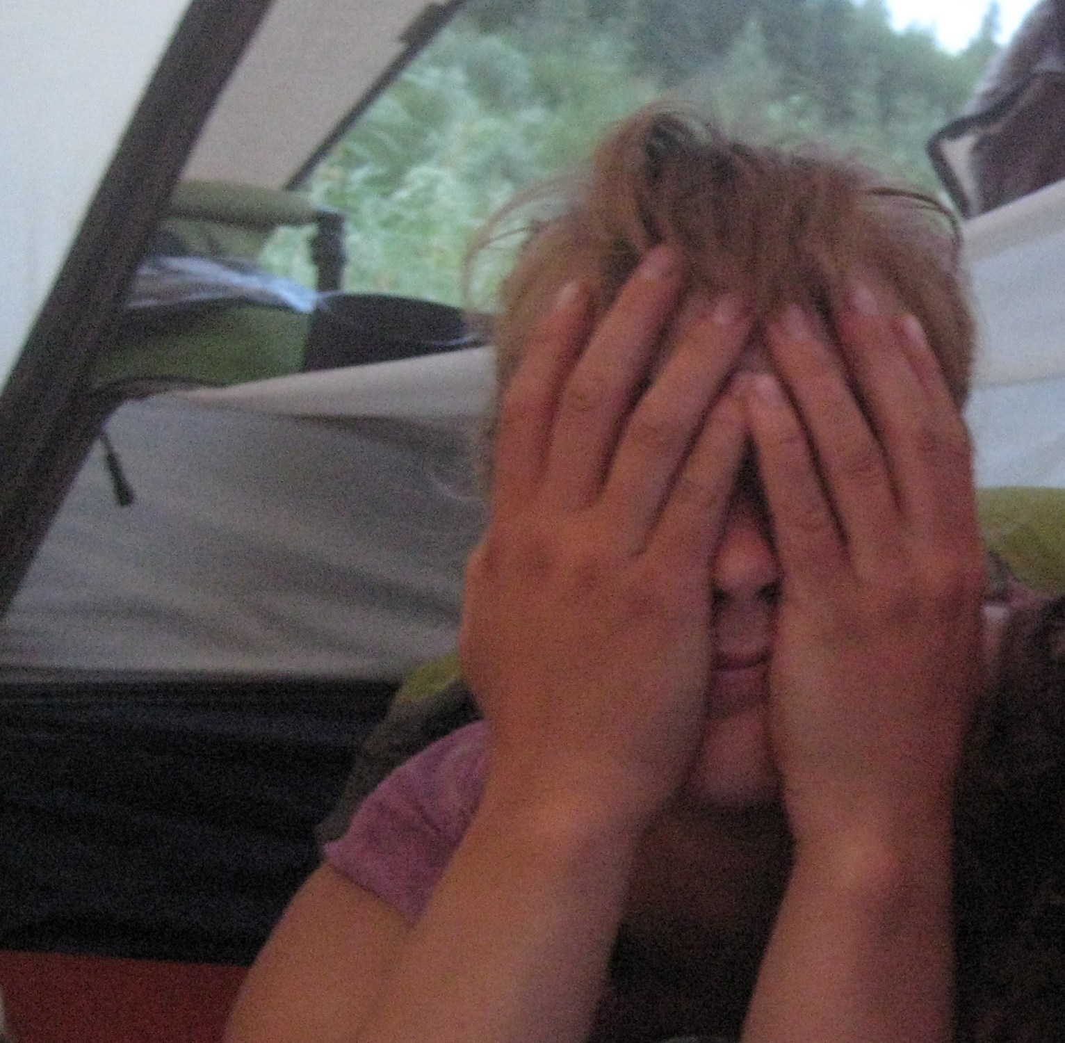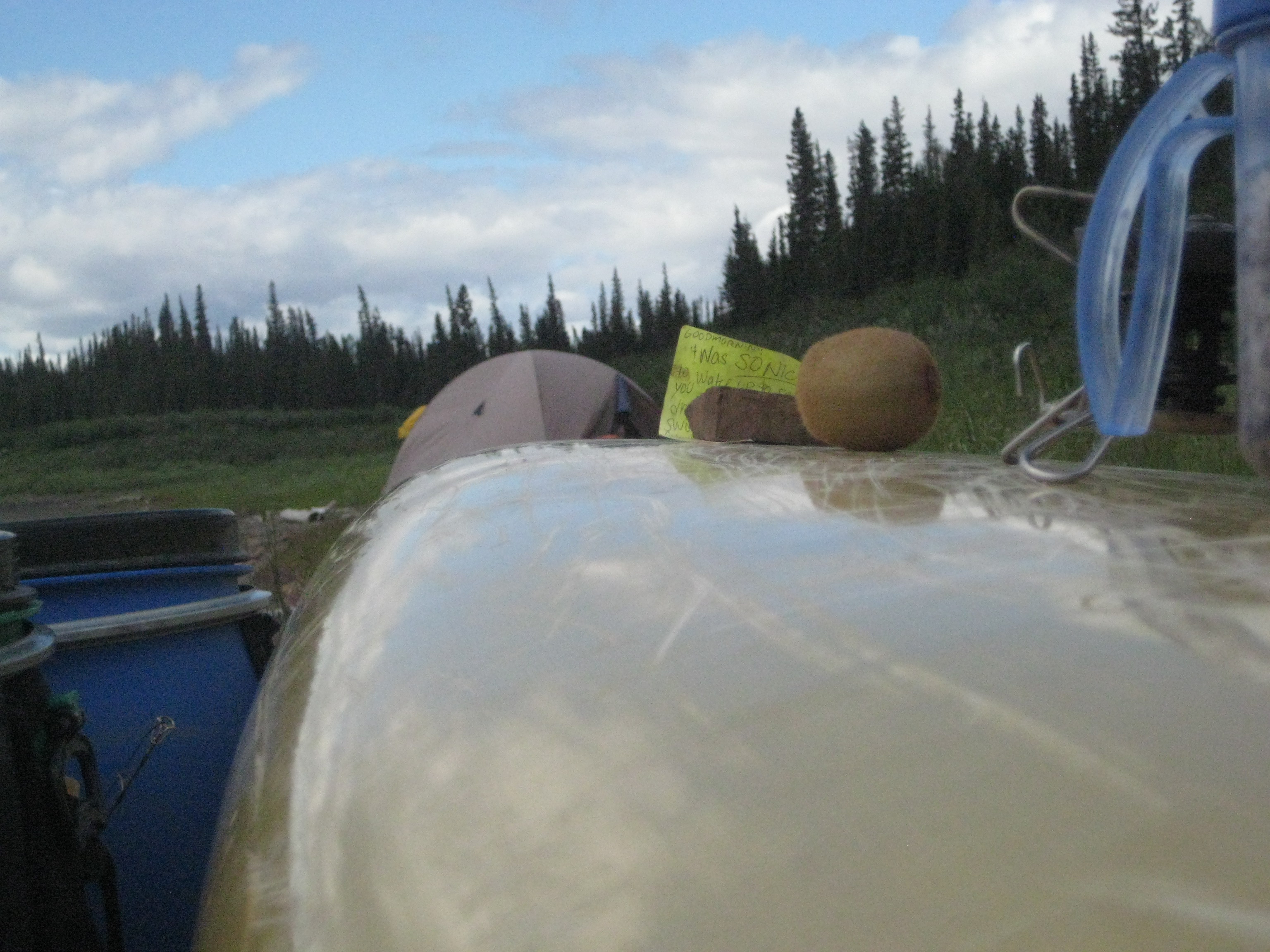 i don’t think i’ve mentioned it yet, but we started making up songs and singing a lot a couple weeks into the trip. sometimes it would just be a couple of words sung over and over with added oohs, unhs, oh yeahs or various beats, and sometimes we would sing whole conversations. some two-word songs stuck for the whole trip, and we’d sing them randomly (they had good beats to dance to, so i’d usually sing them when i was excited). the song that stuck best with emma was ‘the birds in the north, they don’t sleep, did you hear’, which became a sort of lullaby. this one started back on the liard when we’d hear a beautyfull bird call repeatedly throughout the night. i found this introduction of singing interesting and wondered if we were going through music withdrawal.