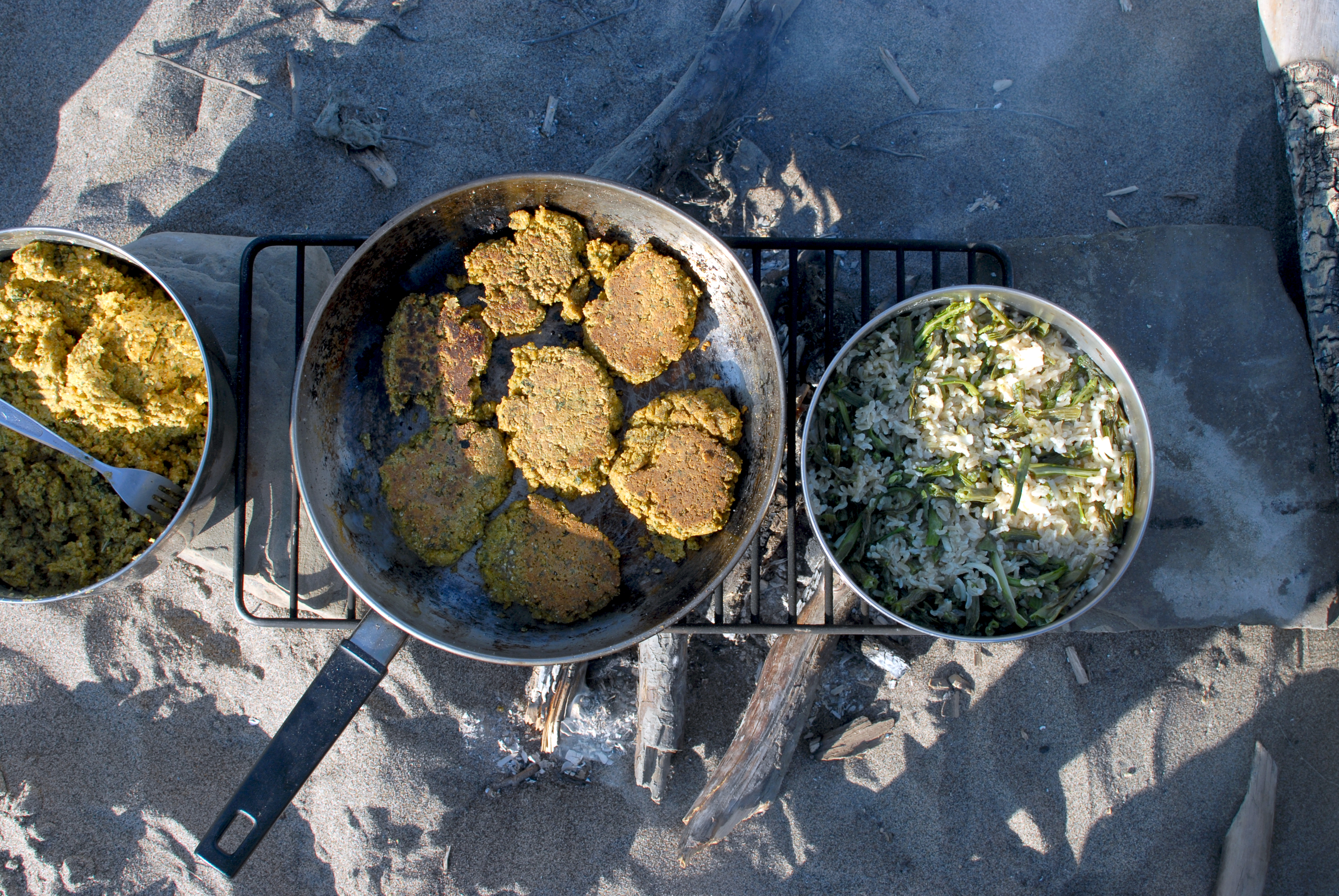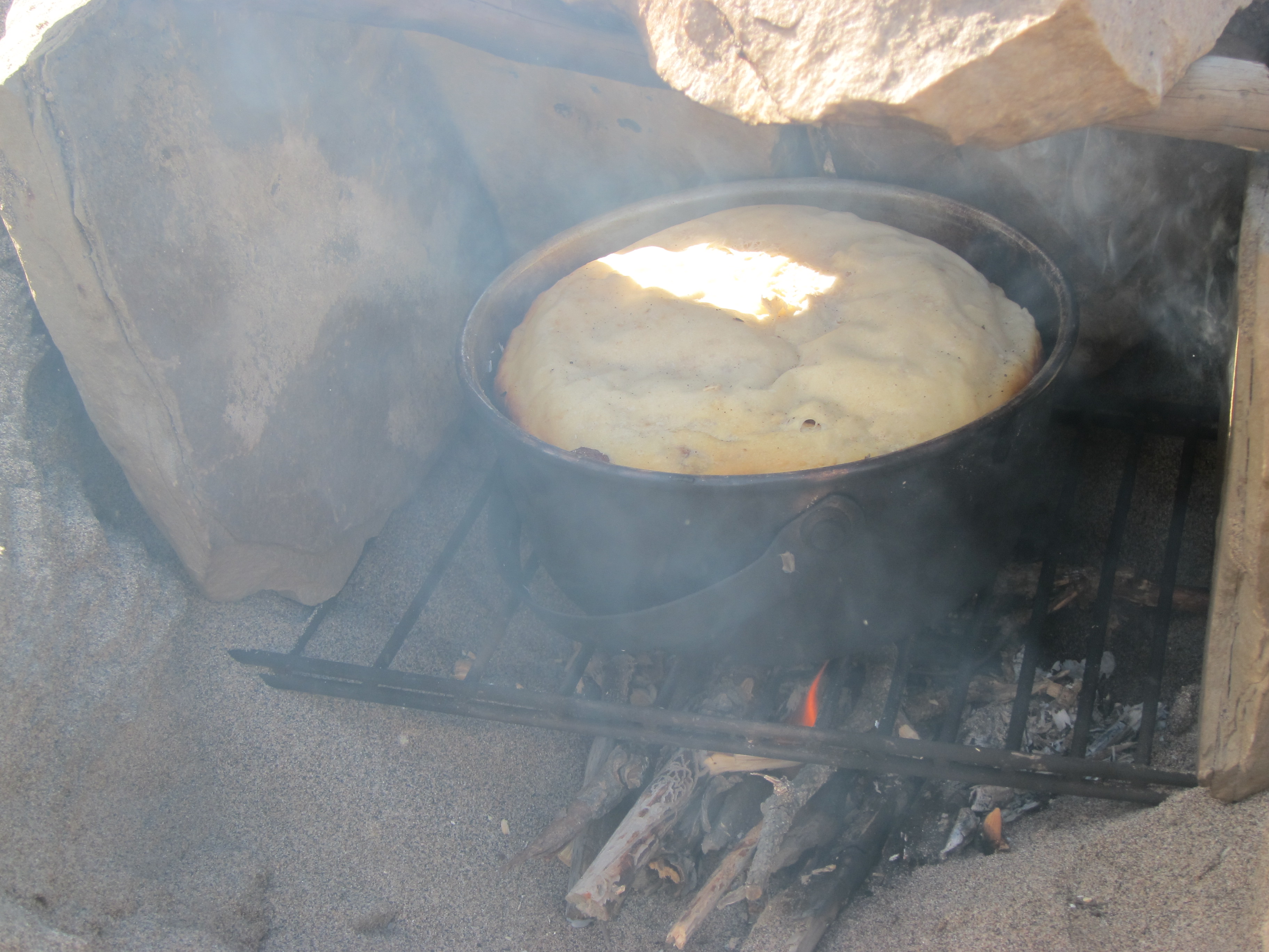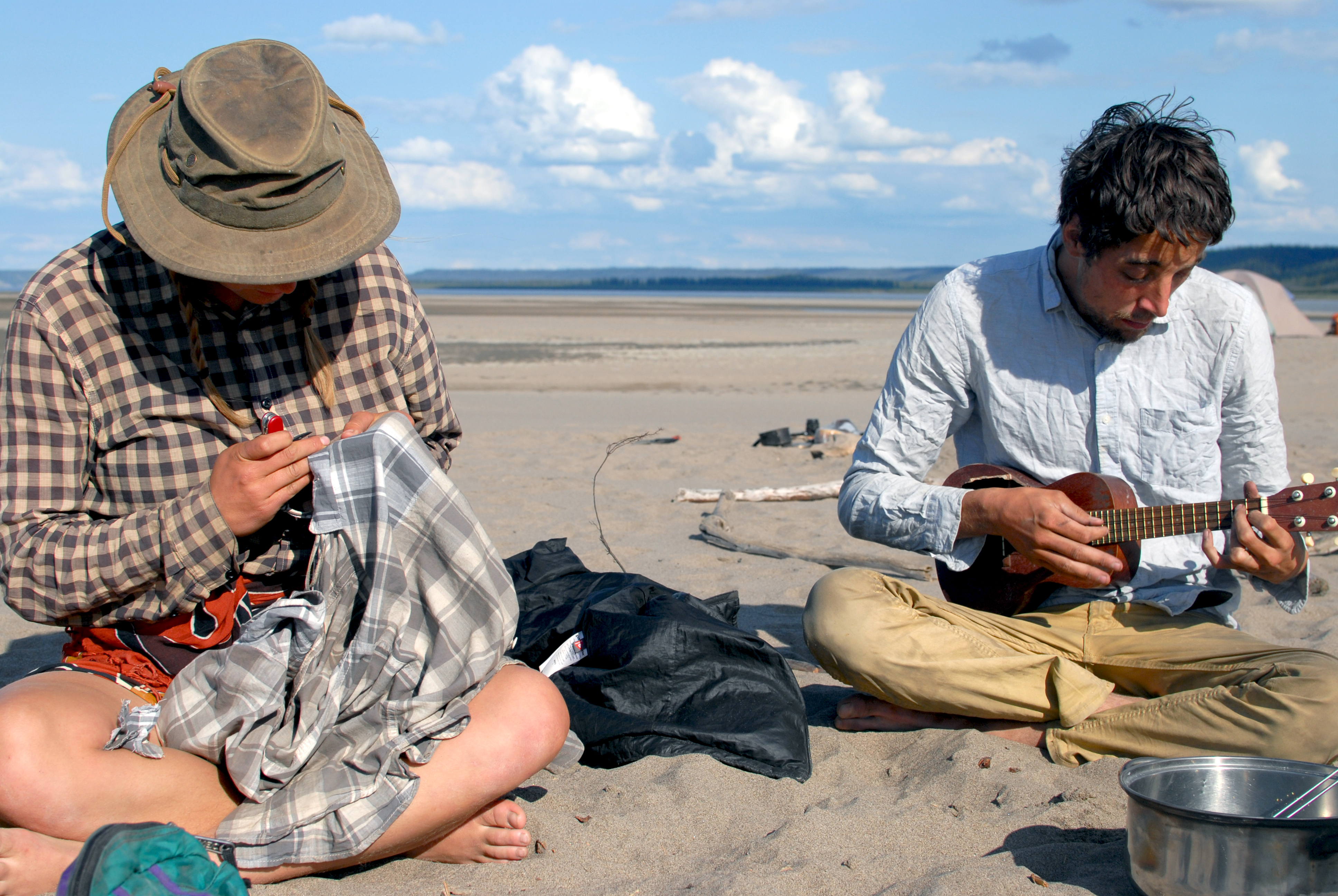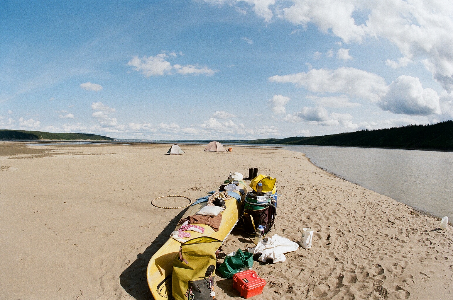decided to stay for a rest day and enjoy the calm weather. around +23, i’d guess. water came up overnight, an inch or two, first time we’ve noticed it do that. swam and bathed and laundered. charged batteries (solar panel works! it was on the fritz one day, but it must have been the heat). had emma’s deelish bacon potato pancakes with bannock. will went “shopping” on the mainland for firewood and came back to make bread in a sand and stone oven he built. had felafel, rice and green beans for dinner. wrote postcards. drank tea. sewed things. had a bonfire at night. so nice to just be here and not be moving through like usual.