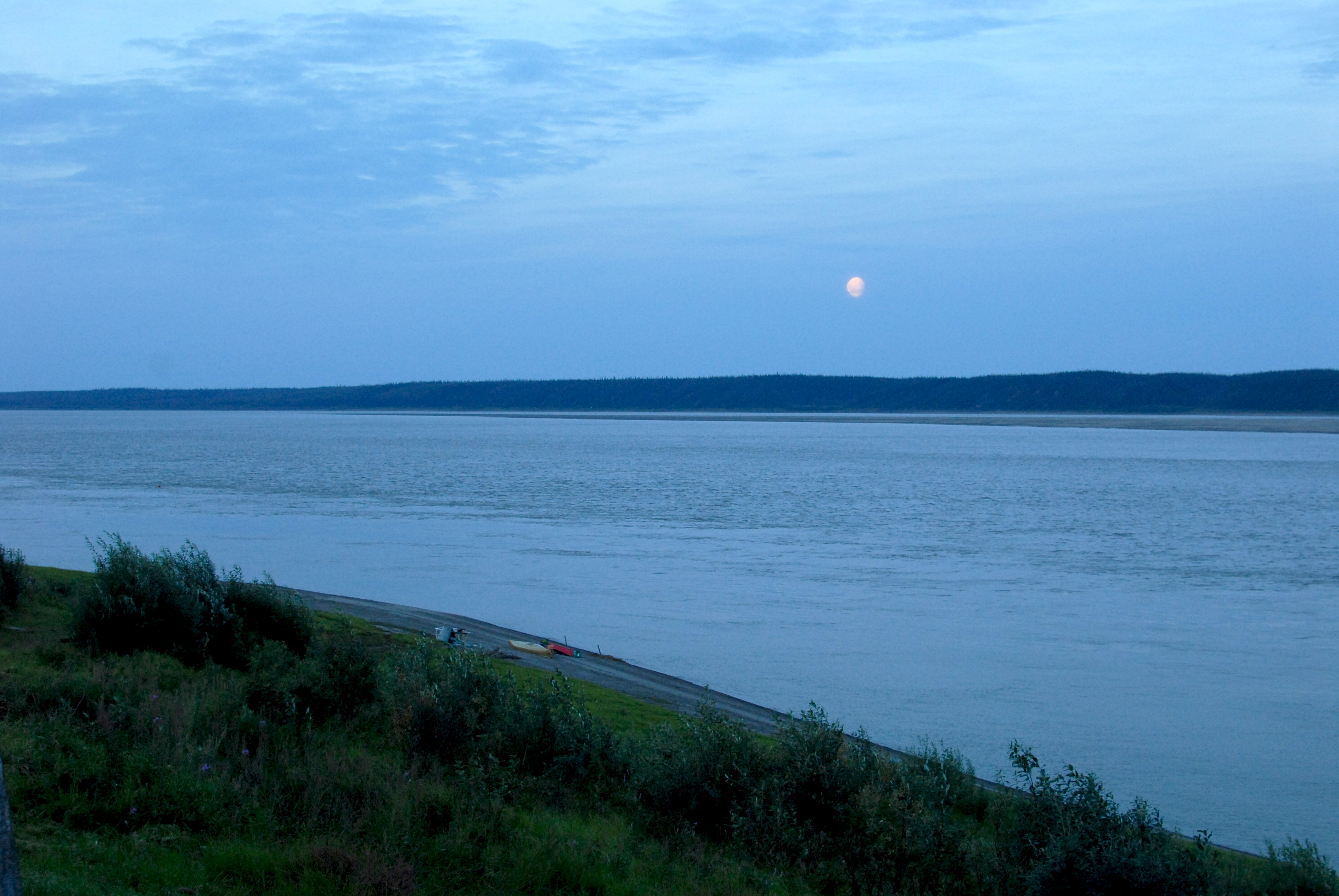 at danny’s fish camp/home with him and paul. it’s the first home we’ve had the pleasure of stopping at on the deh cho. he was the first one who was obviously home, and he did his best to flag us down! emma and will heard a gunshot, and then shortly thereafter we spotted danny’s. we were a little wary due to the shot, but emma then saw smoke signals and a white flag waving. turns out danny didn’t see us and fired a shot to scare off wolves that were down on his beach, when he realized we were there he proceeded to try to seem as friendly as possible.
