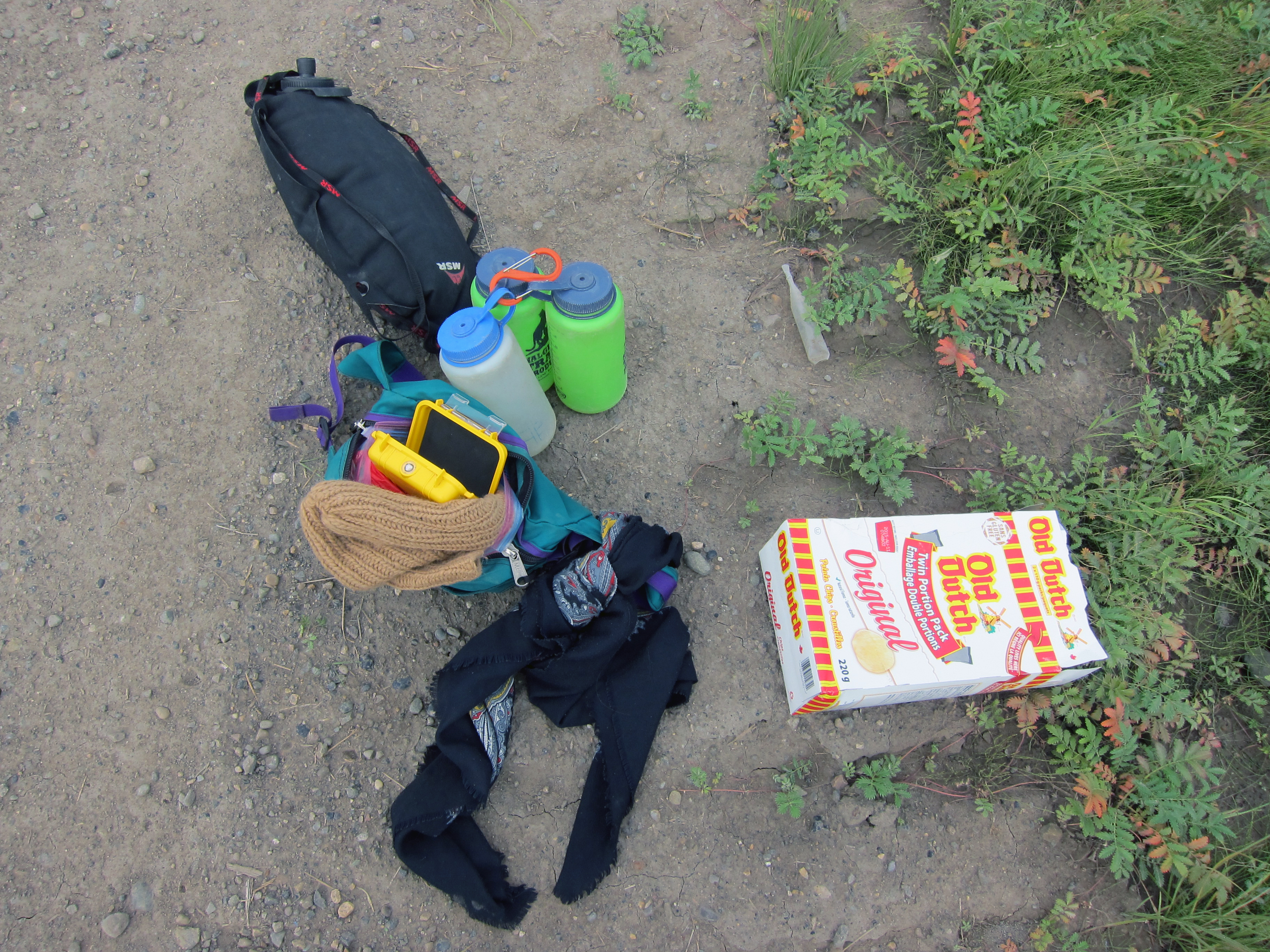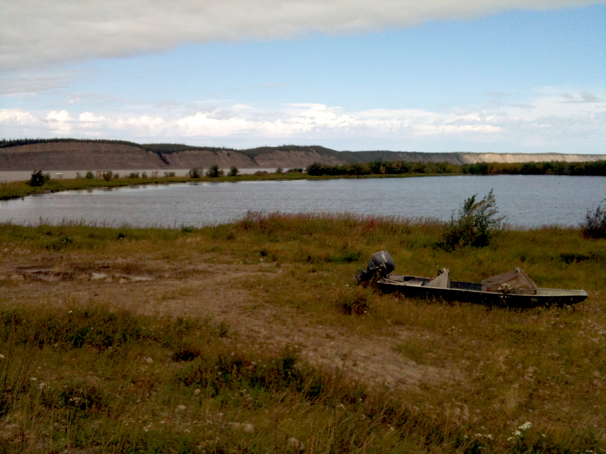 we only got about 2k away from tsiigehtchic tonight because the wind is horrendous and we couldn’t get very far for all the effort we were putting in. emma said the waves were about five feet as we crossed the river to the other side. i wasn’t watching, but they did feel huge. i hope it calms because at this point we are both tempted to hitch to inuvik to have more time on the way home to do fun things. a three day paddle from here, but it’s only about an hour hitch by road.