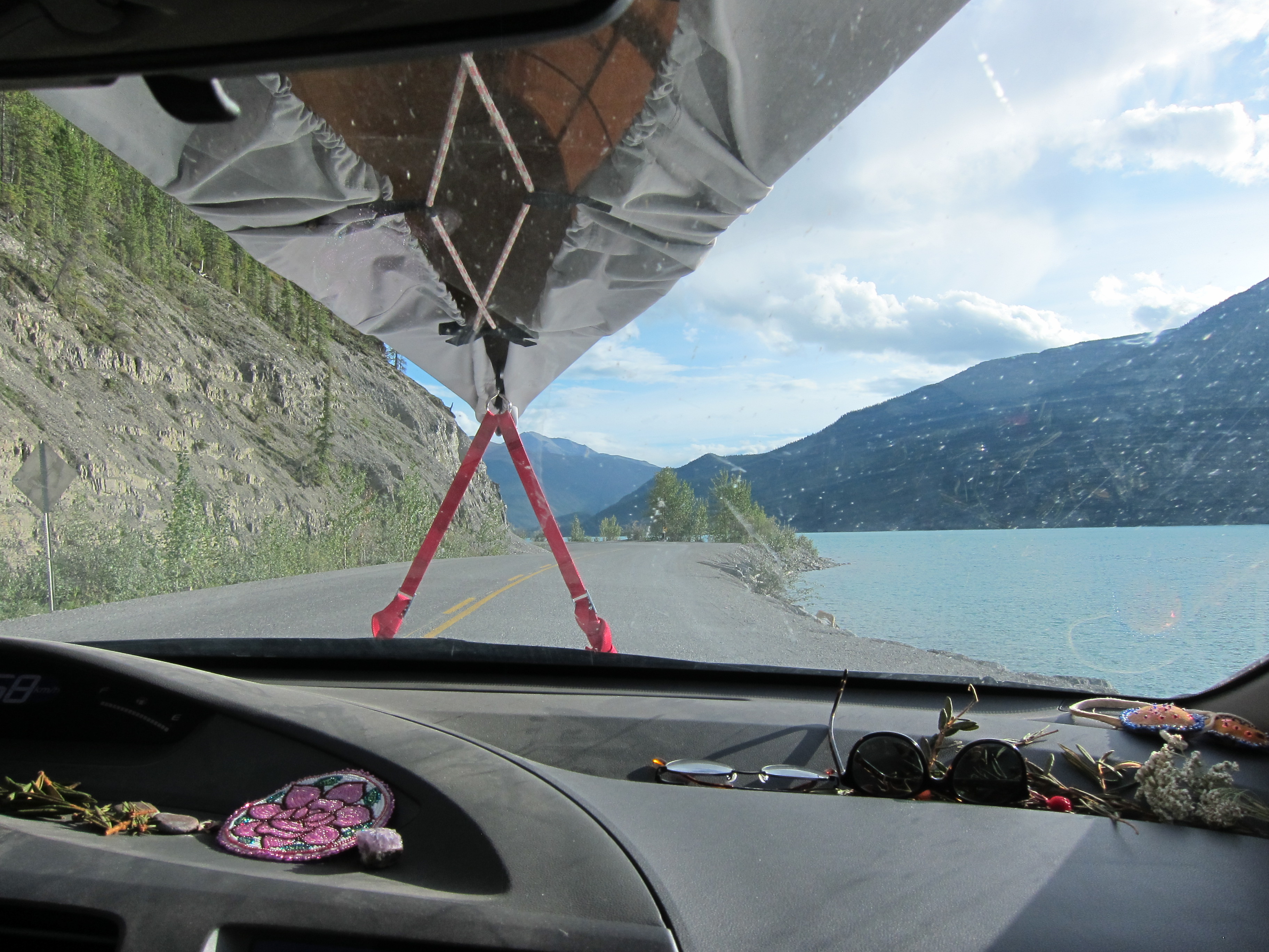 after liard we found a great spot on muncho lake to have lunch and laze about and read. this was on my list-of-fun-things-to-do-on-the-way-home and oh it was perfect. we also saw rocky dried-up river bed after dried-up river bed. we figured they must be rainy season rivers. they were beautyfull. we didn’t manage to pull over and film in one, but we did find a rocky plain to film on.