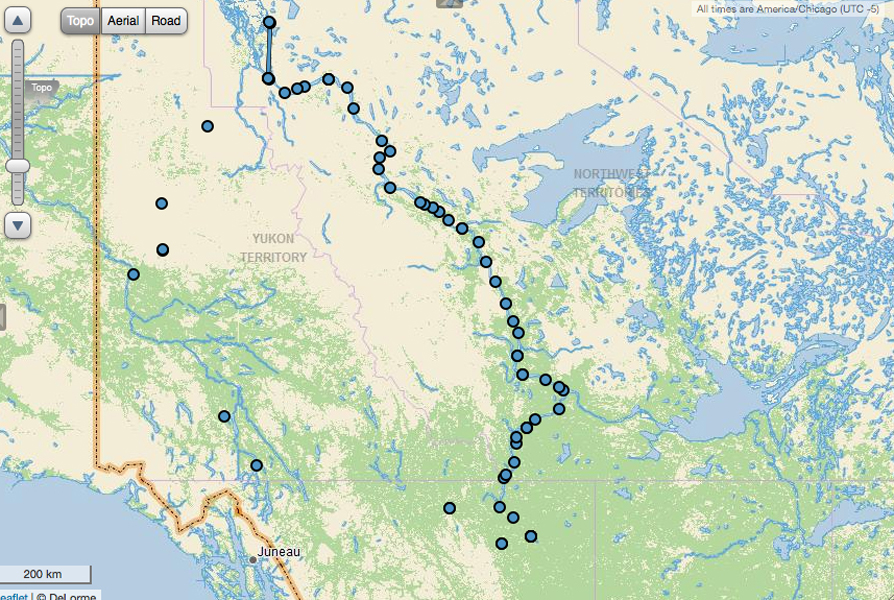 august 20, 671m, edmonton. august 21, 534m N 51˚51 W 105˚5, lanigan, sk.