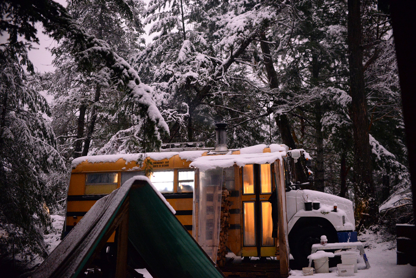 the day after coming home to my sweet bus i got an email from sandika saying, ‘we heard you’re home. there’s a christmas potluck dinner at hilary and jordans tomorrow starting at three…’ i had not been home for even 24 hours when this happened. then a couple of hours later sandika and laura and laura and hilary called from a hike to the top of the islands highest peak to make sure i knew about the potluck. do i need to tell you why i love living here? while we were on the phone i ran out to my lands lookout point to see if i could spot them, but it’s really pretty far and i didn’t bring the binoculars and the top of the mountain was encased in a gauzy fog. it was snowing up there, they said.