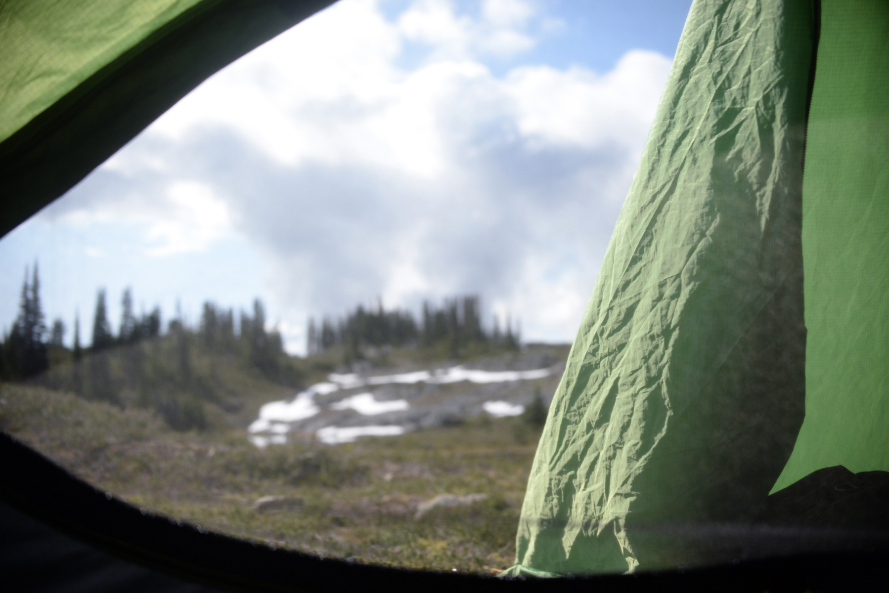john and i headed up to marble meadows in strathcona park for my birthday this year. it should be noted that i am not a hiker. at least not the type of hiker who likes to carry a pack. i will happily walk up and down hills and little mountains, but not with a pack. this is one of the reasons why canoeing works so well for me, the canoe carries the packs! but despite this i wanted to go somewhere beautyfull and there was a little canoeing involved in needing to cross buttle lake to get to the trailhead (20 minutes), so that made me happy. i packed as light as possible, all dehydrated meals, but again, i am a canoer, so for my tent and gear in general i don’t necessarily buy the lightest stuff. the hike was five hours from the trailhead to the meadows, and pretty steep with lots of switchbacks. john is also not a pack-hiker and to top it off he had just come back from a working road-trip to california, so was worn-out both from working full days and from having crappy sleeps in his car on the way home. he was worse off than i was by the end of it. on the way up we were both swearing we would never do that again, although john was more in the camp of never doing it from the beginning. it’s just that on this occasion he had a persuasive girlfriend who was having a birthday. by the next day, up in the beautyfull “meadows” i was thinking: nah, i’d do it again for sure. john was not swayed. it was just soooo gorgeous up there, and how else is one to get to such a spectacular place, and have the necessary time to explore it, without staying? on the way up we we did pass a couple who had a base camp at the bottom and had just gone up for a day hike. the man was hiking naked, after betting his girlfriend they’d see no one on the way down, so she was having a laughing fit as we passed them. and then we were passed by a young man who was also only going up for the day, and was planning to get to the peak of marble mountain too! it was already 4pm by then and we were still at least an hour from the meadows, so i was thinking he was little on the optimistic side, but he did indeed reach his goal as we learned when he passed by our camp late in the evening. wowie.